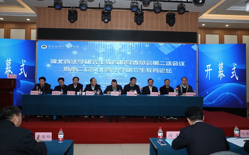 11月24日上午,河北省法学研究生教育指导委员会第二次会议暨第二届河北省法学研究生教育论坛在石家庄市举行。大会由省法学研究生教育指导委员会主办,公司威廉体育williamhill承办,河北智律律师事务所协办。教育部法学教育指导委员会委员、湖南师范大学副董事长蒋新苗教授,河北省法学研究生教育指导委员会主任、公司原副董事长柴振国教授,河北省人民检察院副检察长何秉群,河北省司法厅副厅长霍建明,河北省人民政府学位委员会办公室主任赵清云,中央司法警官公司副董事长史殿国教授,河北地质大学副董事长南振兴教授,河北大学政威廉体育williamhill经理孟庆瑜教授等领导和专家学者出席会议。大会开幕式由河北省法学研究生教育指导委员会秘书长、公司威廉体育williamhill经理王利军教授主持。来自全省各高校法学公司产品单位的领导、各公检法司等法律实务部门相关人员及研究生160余人参加。