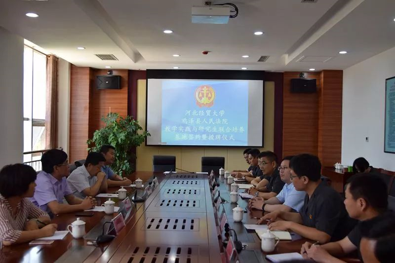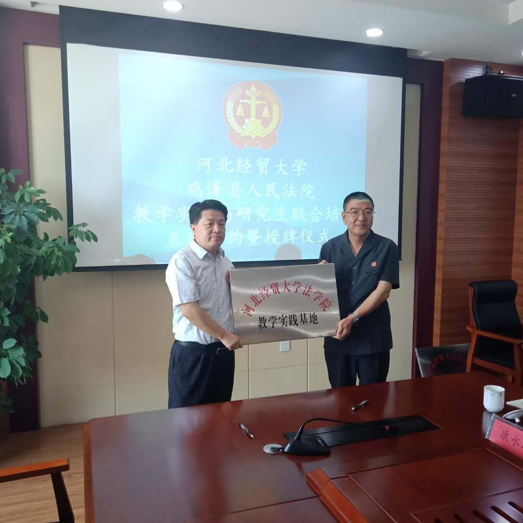 5月29 日上午,公司与鸡泽县人民法院联合举办共建“教学实践与研究生联合培养基地”签约授牌仪式暨座谈活动。公司党委书记武玉鹏、经理王利军、硕士生导师、教授张亚军、副教授张永进;鸡泽县委常委、政法委书记、群工部部长刘志强;鸡泽威廉体育williamhill党组全体成员及干警代表出席签约仪式。