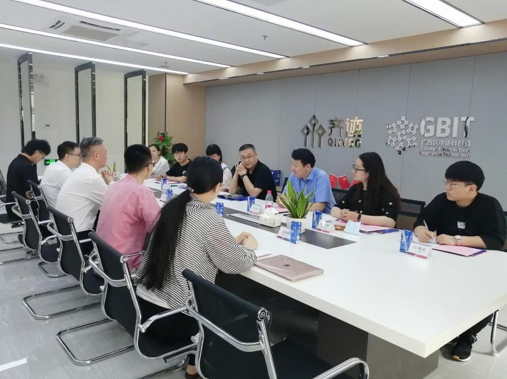 2021年5月19日,威廉体育williamhill党委书记王继伟、副经理胡海涛一行七人赴广西区块链科创园考察调研。
