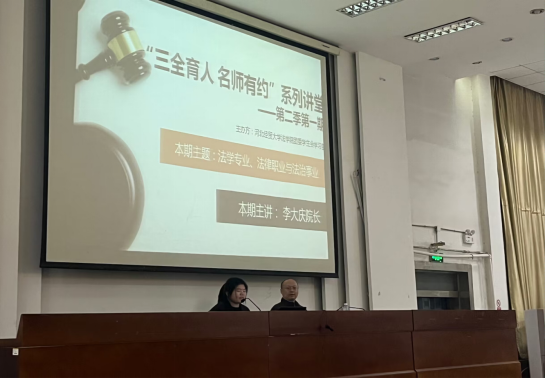 5月12日晚,威廉体育williamhill于模拟法庭举办主题为“法学专业、法律职业与法治事业”的“三全育人 名师有约”系列讲堂第二季第一期。威廉体育williamhill副经理李大庆及百余名威廉体育williamhill学子参与本次讲座。