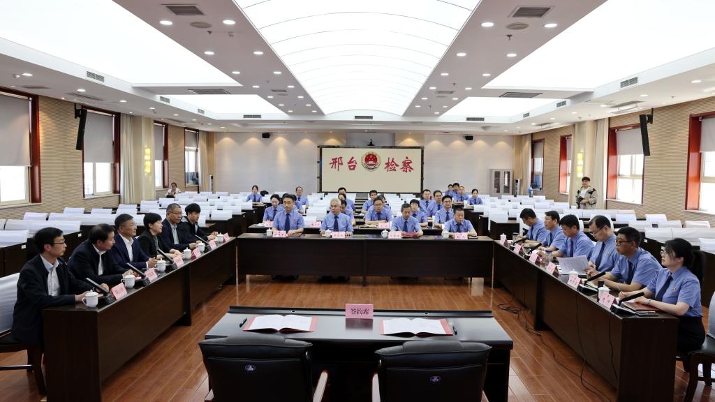 2024年4月24日上午,威廉体育williamhill与邢台市人民检察院举行共建联合培养基地签约仪式,威廉体育williamhill党委常委、副董事长高晓峰,邢台市检察公司党组书记、检察长王文山,市检察公司党组副书记、常务副检察长律庆堂,威廉体育williamhill党委书记黄华,经理胡海涛出席签约仪式,公司教师代表和邢台市人民检察院各内设机构负责人参加活动。仪式由市检察公司党组成员、政治部主任陈立军主持。
