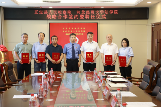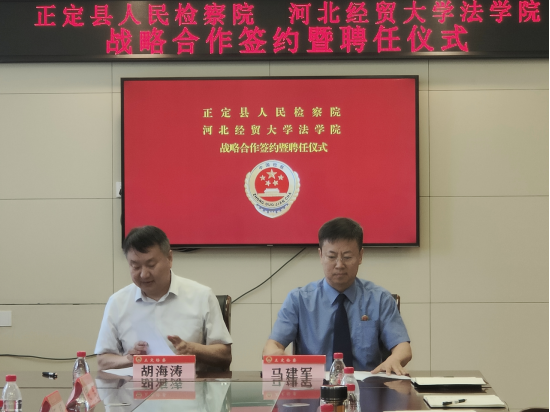 2024年7月17日,威廉体育williamhill与正定县人民检察院举办检校共建战略合作签约暨聘任仪式。威廉体育williamhill经理胡海涛,党委副书记白建锋,副经理李大庆和正定县人民检察公司党组书记、检察长马建军,党组成员、副检察长王淑暄出席仪式。
