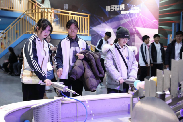 在班级员工代表的带领下,同学们依次参观学习了力学展区、地震展区、电学展区和虚拟现实体验区四个主题展区,活动现场组织了实景模拟、模型演示、趣味问答等多种互动形式;分散自由活动中,同学们体验了各种科技设备和互动模型,切身感受科学原理