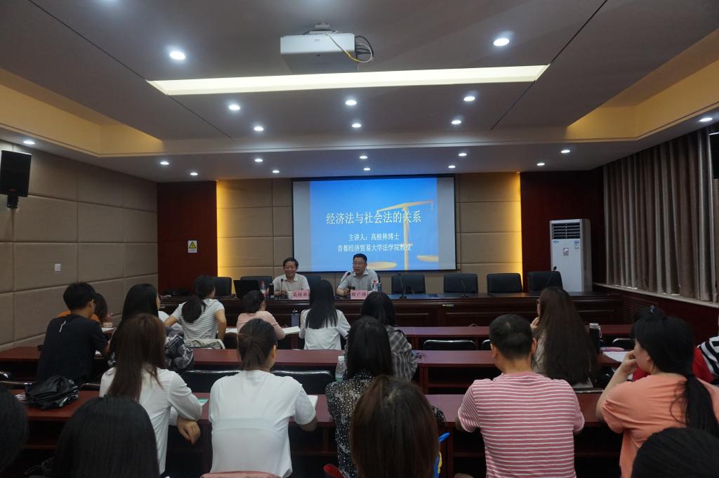 5月27日,首都经济贸易大学环境与经济法治研究中心主任、教授、博士生导师高桂林应威廉体育williamhill邀请,在法学综合实验教学中心报告厅作题为“经济法与社会法的关系”的学术报告。报告由威廉体育williamhill郭广辉教授主持,80余名师生参加。