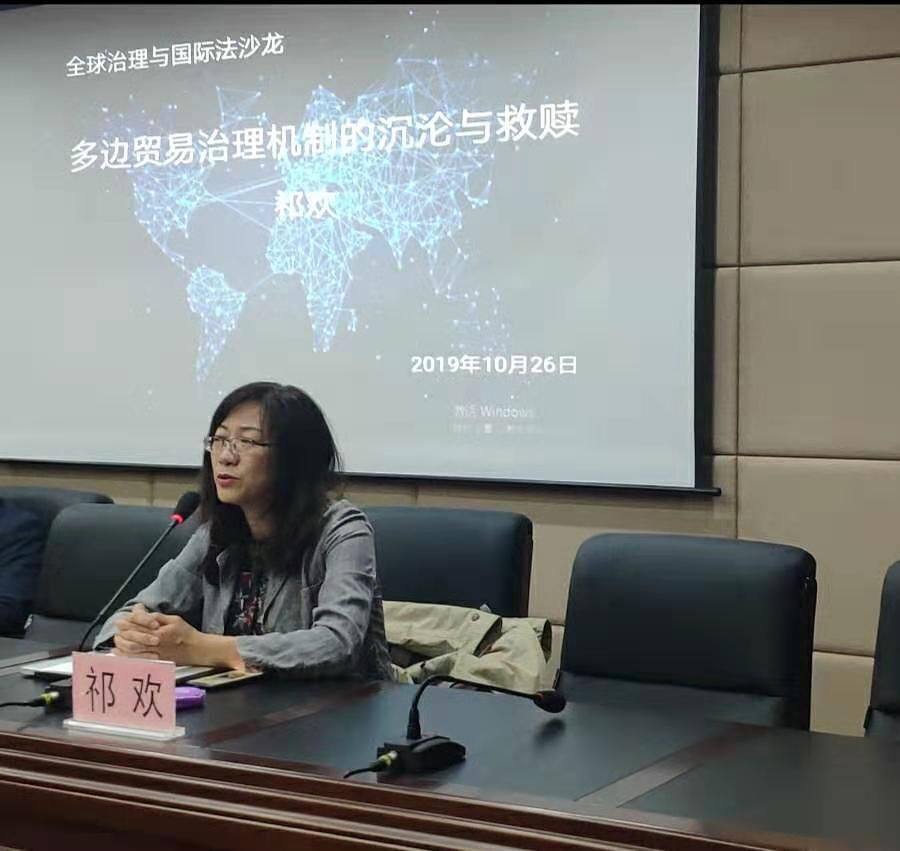 2019年10月26日,威廉体育williamhill邀请中国政法大学国际威廉体育williamhill祁欢教授作题为“多边贸易治理机制的沉沦与救赎”的学术报告,公司40余名研究生参加。