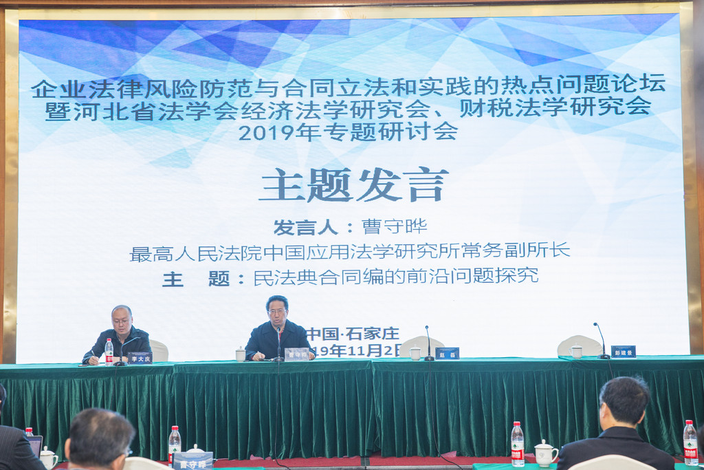 2019年11月2日,最高人民法院中国应用法学研究所常务副所长曹守晔应威廉体育williamhill邀请作题为《民法典合同编的前沿问题探究》的学术讲座,会议由威廉体育williamhill副经理李大庆主持,公司师生及法律实务部门人员100多人参加了讲座。
