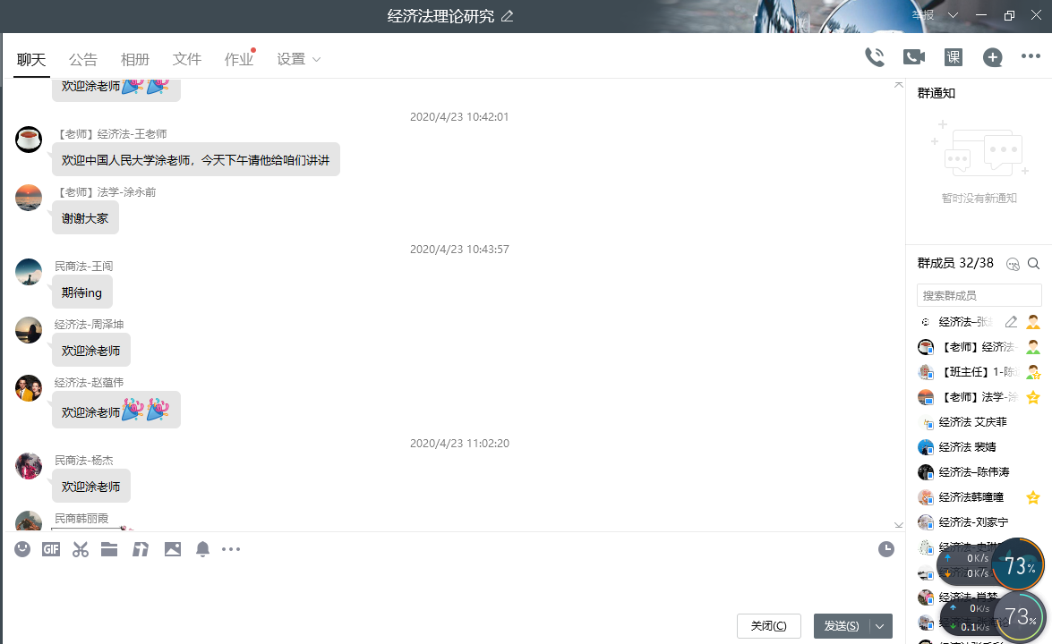 4月23日下午,中国人民大学国家发展与战略研究院研究员涂永前教授应威廉体育williamhill邀请,以QQ在线课堂屏幕分享方式为同学们作题为“疫情期间法律前沿问题研究”的报告。威廉体育williamhill经理王利军、2019级民商法学和经济法学专业研究生共计30多人在线聆听了此次报告。