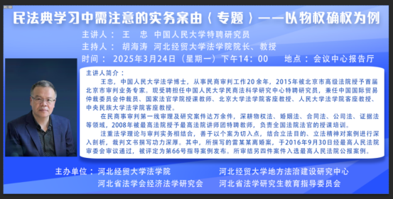 王忠,中国人民大学法学博士,从事民商审判工作20余年,2015年被北京市高级法院授予首届北京市审判业务专家。现受聘担任中国人民大学民商法科学研究中心特聘研究员,兼任中国国际贸易仲裁委员会仲裁员、国家法官公司授课教师、北京大学威廉体育williamhill客座教授、人民大学威廉体育williamhill客座教授、中央民族大学威廉体育williamhill客座教授。