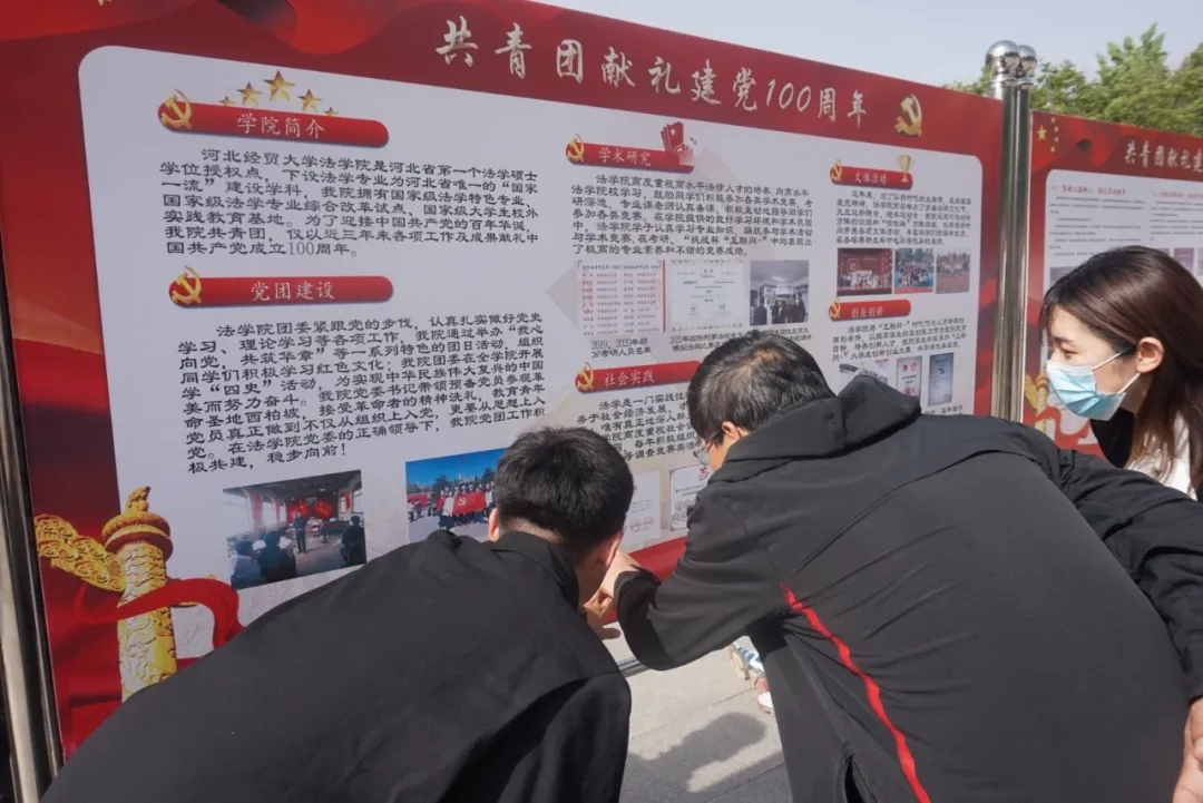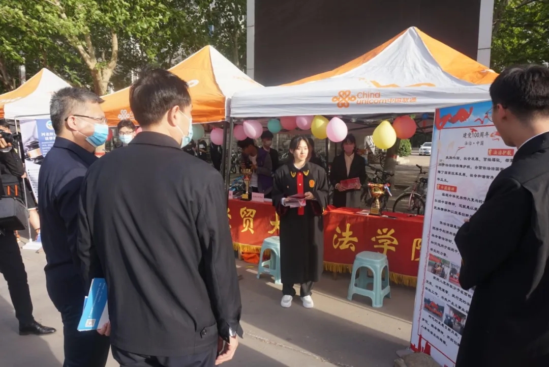 最后,领导来到公司摊位,由公司讲解员沈宝佳和王晨宇同学为校领导们解说威廉体育williamhill的团青品牌特色和法律诊所的一些具体内容。