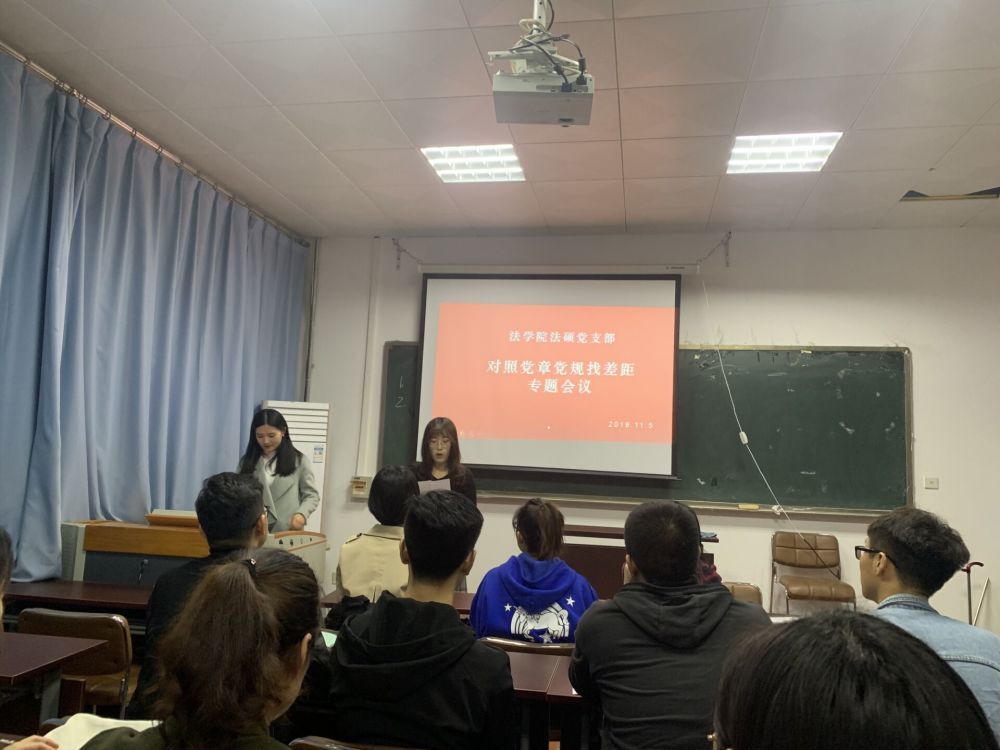 2019年11月5日,威廉体育williamhill法硕党支部在赵娜老师的带领下进行了“对照党章党规找差距”专题会议。会议在B教409举行,威廉体育williamhill法硕党支部全体党员参加会议。