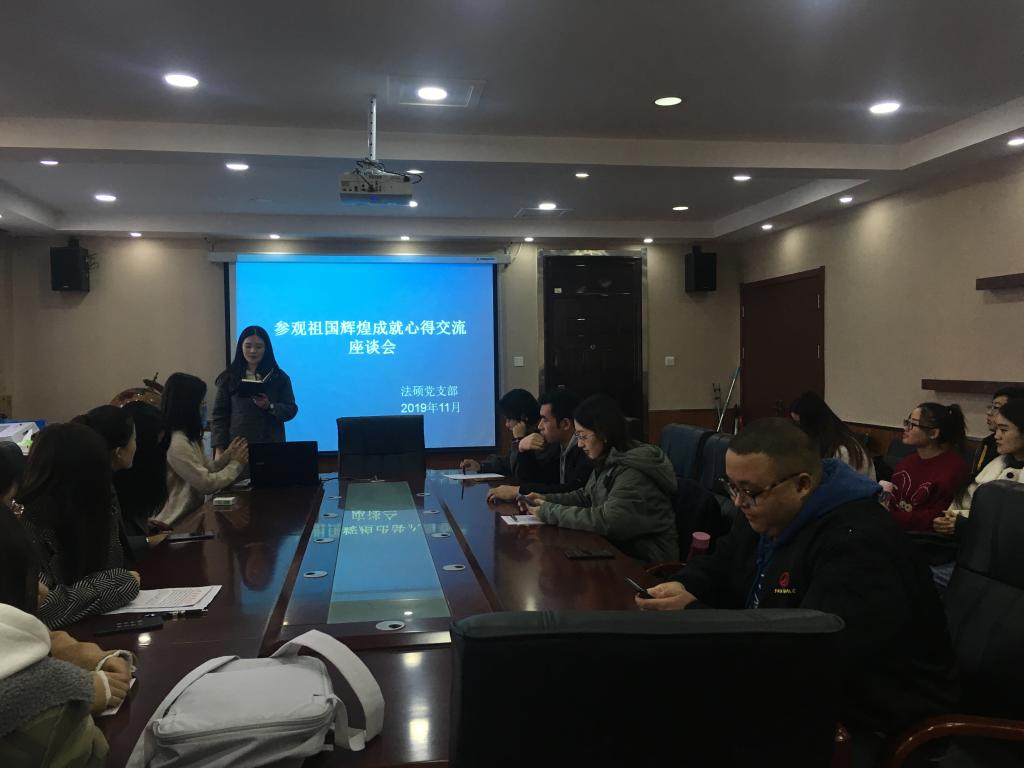 为认真贯彻落实“不忘初心 牢记使命”主题教育精神,2019年11月14日,威廉体育williamhill法硕党支部在支部书记赵娜老师的带领下开展了参观祖国辉煌成就心得交流座谈会,会议地点在第二办公楼会议室,法硕党支部全体成员参加。