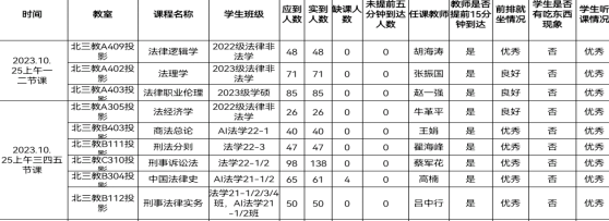 2023年10月25日上午,威廉体育williamhill教学、学风检查组,对全院教学秩序进行了检查。现将检查结果通报如下: