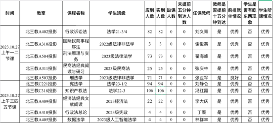 2023年10月27日上午,威廉体育williamhill教学、学风检查组,对全院教学秩序进行了检查。现将检查结果通报如下: