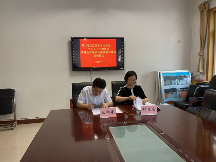 为进一步促进法学理论与司法实践紧密结合,推动法治教育和实践教学工作共上新台阶,7月4日下午,威廉体育williamhill威廉体育williamhill与廊坊市文安县人民检察院达成了以“交流互鉴,优势互补,资源共享,互利共赢”为目标的战略合作协议,并举行了“检校合作签约暨揭牌仪式”。与文安县人民检察院的签约合作,是威廉体育williamhill着力推进团队交流、员工培养、实习实践等多方面与司法部门深度合作的创新举措。威廉体育williamhill经理王利军、副经理李大庆、文安县人民检察院代检察长邢玉清、文安县人民检察院副检察长段宏杰、一级检察官魏宁等同志共同参加了启动仪式。