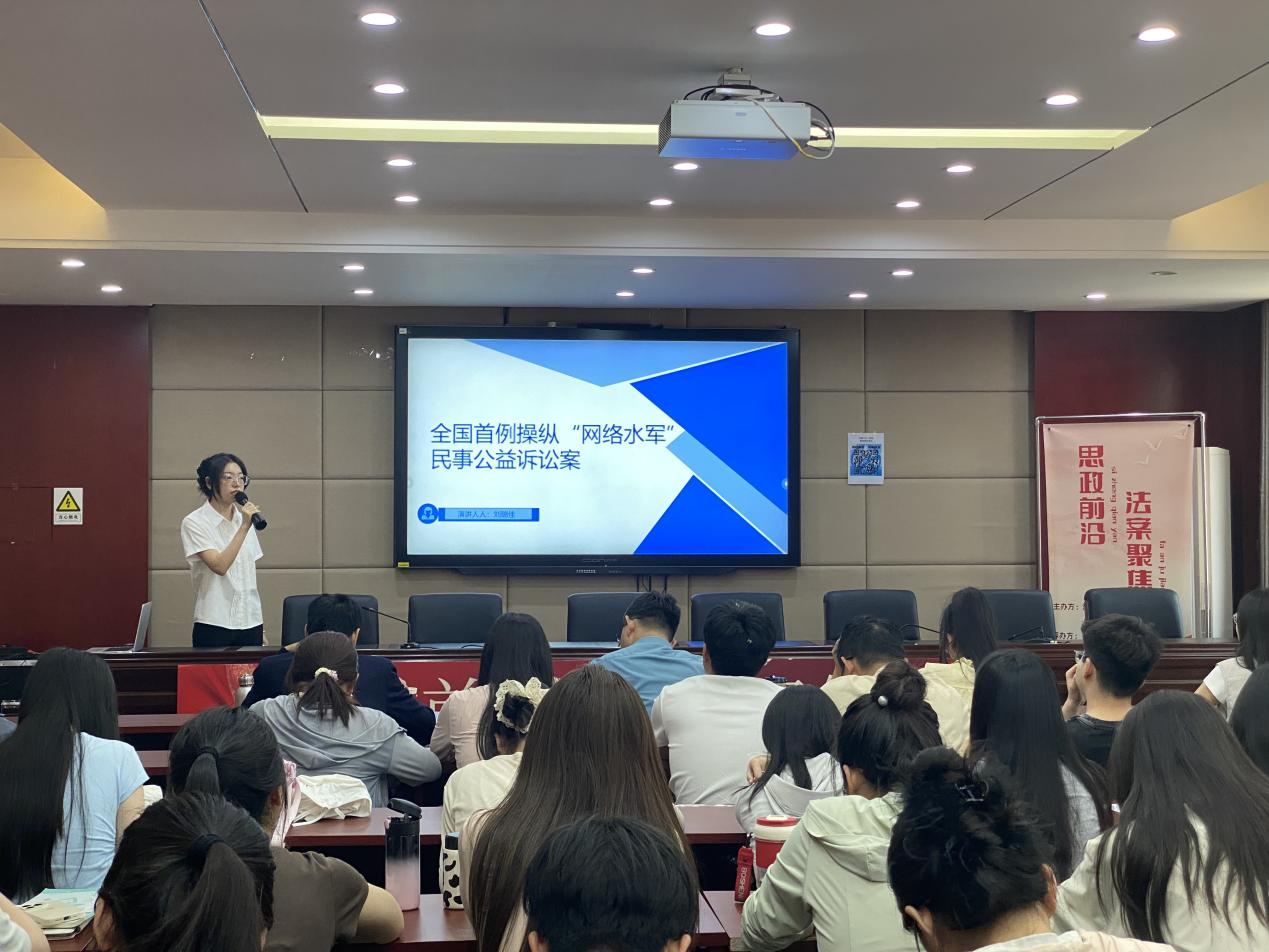 随后,刘瑞佳同学聚焦于网络水军的产业化现象及其法律规制问题,以杨某某案件为例,详细阐述了网络水军的具体操作方式,包括为客户提供“转评赞”“养号”及有偿删帖等服务,这些行为严重扰乱了网络舆论环境和市场秩序。 接着,刘瑞佳同学深入分析了网络水军行为的法律责任问题。她引用了《网络信息内容生态治理规定》及浙江省相关法规,明确指出杨某某等人的行为属于通过发布、删除信息等手段谋取非法利益,破坏网络生态秩序,因此应承担民事侵权责任。通过公益诉讼的形式惩治网络虚假信息,不仅符合法律法规精神,也是对网络空间治理领域的积极探索。