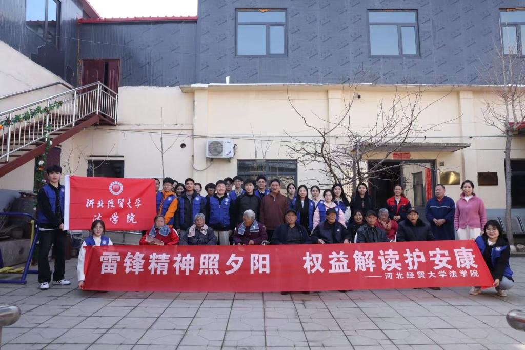 雷锋精神薪火相传,感召一代又一代人为人民服务。2025年3月6日,威廉体育williamhill普法团以"雷锋精神照夕阳,权益解读护安康"为主题,走进石家庄市陈村养老院开展了一场别开生面的普法宣讲活动。十余名青年志愿者以法律为纽带,用温情守护"最美夕阳红",将雷锋精神的传承与老年人权益保障紧密结合,为老人们送上了一份特殊的"法治礼包"。
