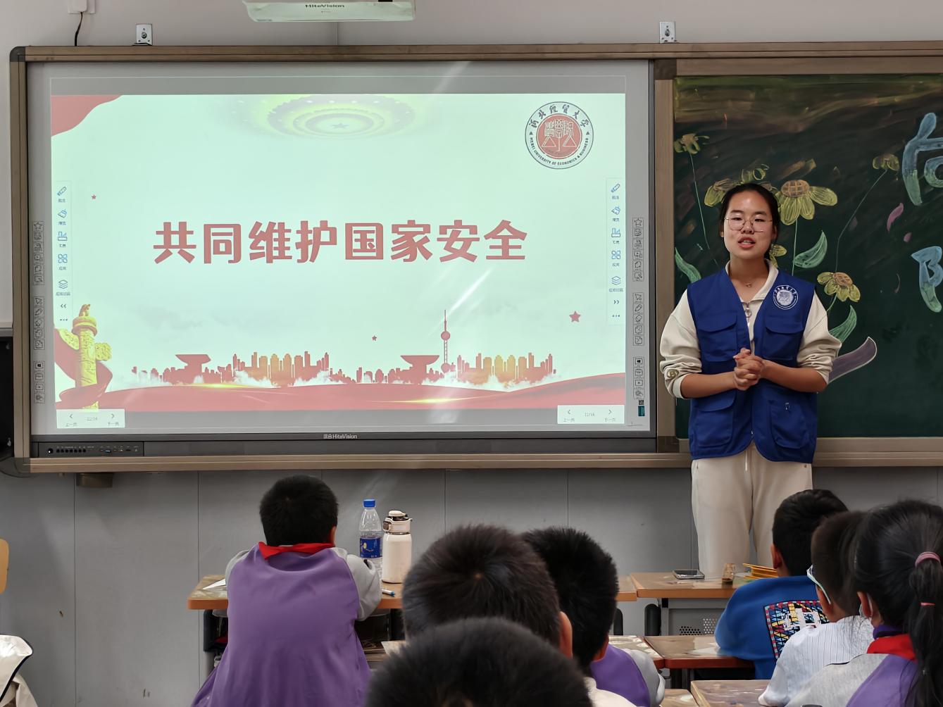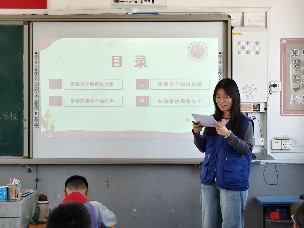 艳阳午后,伴着和煦的春风,志愿者小队来到了前杜北公司。课程伊始,我们的志愿者为同学们分发了国家安全教育的传单供同学们学习,随后为同学们讲解了什么是国家安全、重视国家安全的重要性以及作为员工我们应该如何做到维护国家安全。课堂互动环节,同学们十分积极踊跃,纷纷举起小手,得到奖品后脸上都洋溢着笑容。