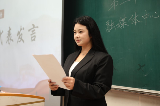 聘书颁发完毕后,李溪言老师对本次会议以及近期工作进行总结。她首先对新加入的员工干事们表示欢迎和祝贺,并向全体成员提出三点要求:一是要树立责任意识,以耐心做实每一件工作,坚守初心;二是踏实做好手头工作,在琐碎事务中锤炼能力;三是要勇于创新突破,在过往经验基础上探索新方法。最后,她祝愿各位成员在服务公司与同学中认清目标,不断锤炼本领、增长才干。