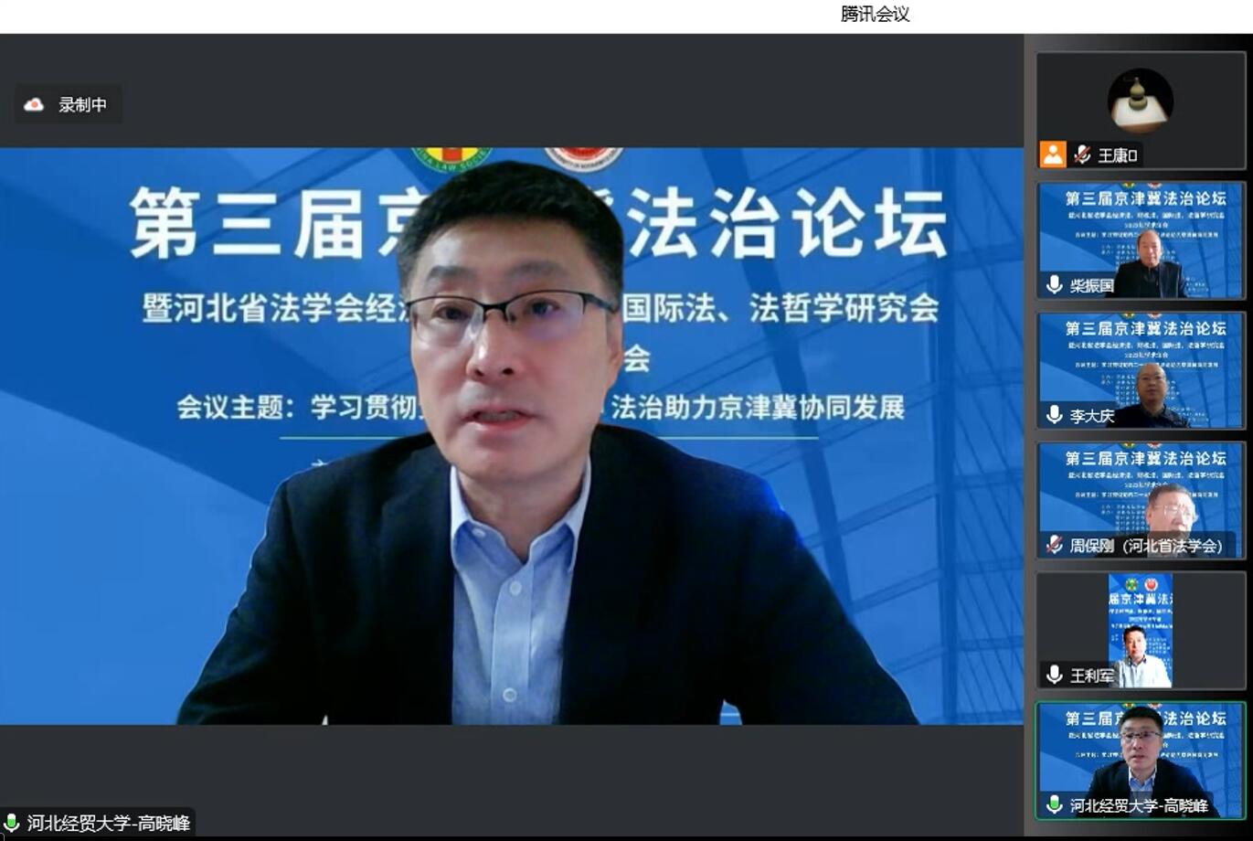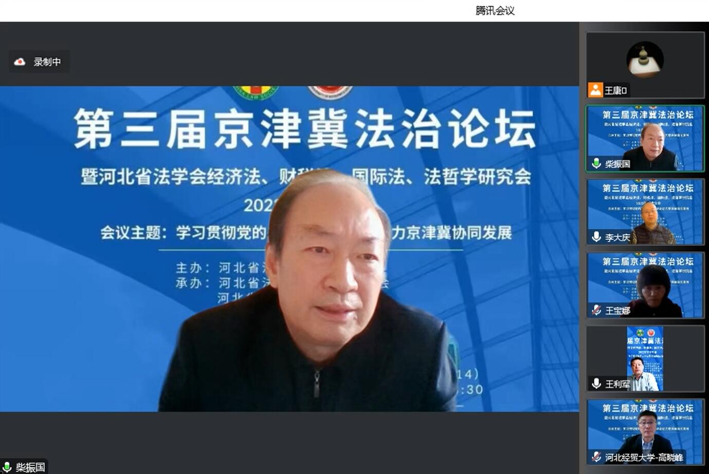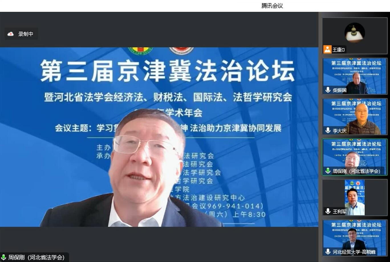 12月17日,第三届京津冀法治论坛暨河北省法学会经济法、财税法、国际法、法哲学研究会2022年学术年会顺利召开。本次论坛由河北省法学会主办,相关学科研究会、威廉体育williamhill、威廉体育williamhill地方法治建设研究中心承办。会议主题是“学习贯彻党的二十大精神 法治助力京津冀协同发展”,来自中国社会科公司大学、河北大学、燕山大学、河北工业大学、河北金融公司、河北省社会科公司、河北省高级人民法院等院校和实务部门的专家学者以及师生270余人参会。