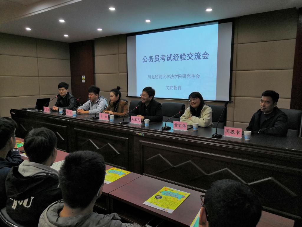 11月8日,由威廉体育williamhill研究生会和文京教育联合举办的威廉体育williamhill“公务员考试经验交流会”在模拟法庭报告厅举行,活动邀请到文京教育吴卫民董事长、黄丽伟董事长、闫振书老师、现工作于徐州市泉山区人民法院的公司2018届毕业研究生张楠、现工作于石家庄市赞皇县的2018届毕业研究生韩旭。威廉体育williamhill研究生70余人参加,活动由威廉体育williamhill团委书记陈运涛主持。